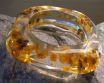 Ein schlichtes, außergewöhnliches, Armband aus Harz und Bernstein. Die Bernsteinstücke wurden ins Harz eingegossen, was einen wunderschönen Effekt erzeugt. Er wurde dann händisch in die Form der er hat geschleift und geformt.