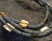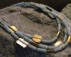3-Reihiges Amazonit Collier mit gehämmerten Elementen aus Silber und Feingold