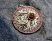Sehr schönes Collier mit einem großen, handgravierten und bemalten Anhänger aus Silber der Probe 925, Leder und einen Swarovski Stein, Gewicht ca.8g, Gr. des Anhängers ca 5,2x5,2cm, aufgehängt ist das Element an einem Runden Stahldraht. Signiertes Unikat. Passende Ohrringe vorhanden!
