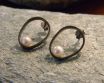 Anmutige und elegante Ohrringe mit einer Perle auf geschwärzten Silber der 925 Probe, Gr ca 2,2x1,6 cm Gewicht ca 2,3 g (Eins) Handerzeugter und signierter Künstlerschmuck