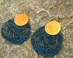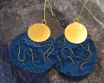 Aus Handgefärbten Spitze, durchbrochen von goldenen Draht in dunklen Aquamarin Grün. Aus 925 Silber mit Feingold vergoldet