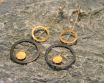 Lange Ohrringe mit Ring Elementen - Gold/Schwarz