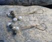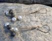 Die Ohrringe bestehen aus kleinen, echten Perlen und geschwärzten Silber Elemente der Probe 925. Länge ca.6,3 cm (mit Bügel) Gewicht ca.2,8 g (Eins)
