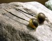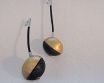 Schöne, lange Ohrgehänge mit ellipsischen Element aus Mooreiche auf einer Seite mit Feingold vergoldet.