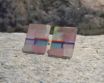 Sehr schöne, moderne, Multicolor Ohrstecker aus Silber 925 Probe, Plexiglas und Recycling Kunstoff per Hand zur einer Mosaik verarbeitet. Länge ca 1,4cm, Breite 1,3cm, Gewicht 1,2g (Beide zusammen)