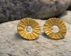 Aus 925 Silber, das runde Teil ist aus per Hand gehämmerten und geformten Messing. Durchmesser des Messing Teiles 2,3cm,  Gewicht ca 2,8 g (Eins)