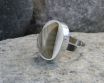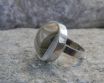 aus 925 Silber und Striped Flintstone, der Stein sehr originell eingefasst - er ist ins Silberfassung versenkt, Gr des Ringes 18-58, Handerzeugter und signierter Künstlerschmuck