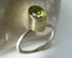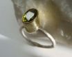 Aus Silber der Probe 925 und Olivin in facettiertem Ovalschliff, die Fassung als goldener Akzent ist aus Messing, die Silber Schiene ist ungleichmässig und minimal an manchen Stellen mit Kupfer angefärbt, was den derzeit sehr angesagten Used, Industrie Look erzeugt. Gr des Ringes 13/53, Gewicht ca 2,8g. Handerzeugter und signierter Künstlerschmuck.