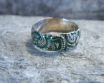 Anmutiger Ring mit Relief und Emaille. Aus 925 Silber, Gr des grünen Ringes 15/55 Gewicht ca 5,2 g, signierte Handarbeit