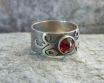 Ein schöner, massiver Ring aus 925 Silber mit einen Relief und facettierter Natur Granat (solch eine strahlende Farbe ist sehr selten)