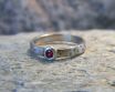 und Struktur, mit synthetischen Rubin. Aus 925 Silber. Gr des Ringes 14/54 Gewicht ca 3 g. Handerzeugter und signierter Künstlerschmuck